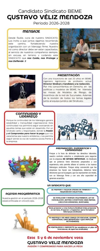 Gustavo Veliz Mendoza, Candidato a Director período 2025-2028.